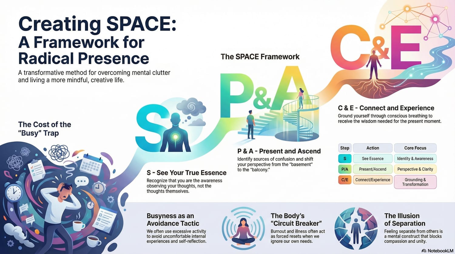 The SPACE framework is designed to help you to optimise your experience of life, overcome a sense of overwhelm, stress or anxiety, and find contentment and peace.